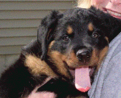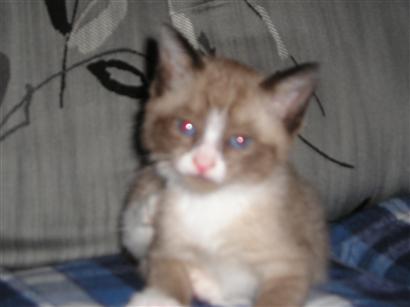 My baby Mr. Blue at 8 weeks...he was so tiny when I picked him up from the breeder that I almost cried!And at 19 months...he's sad because I'm leaving on a business trip - look at his little face looking at the suitcase (can you say attached
