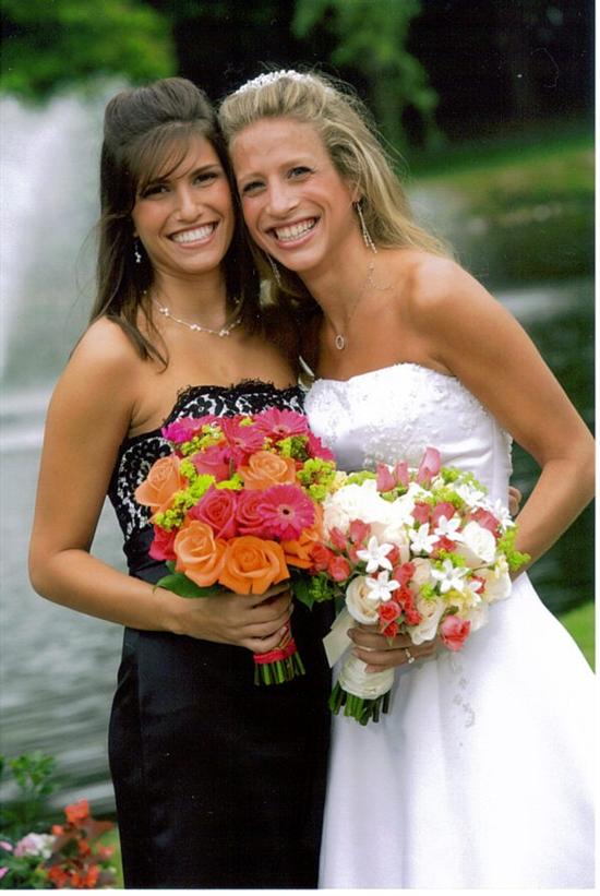 heres some pics of my girls- my whole wedding was black and ivory with really bright flowers that would POP against the B&W