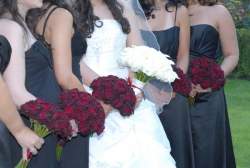 I'm having black and white BM dresses. I have an all Black Magic Rose bouquet. The girls will have in theirs: Black Magic Roses, Cream and White Roses, White Freesia, Burgundy Mini Calla Lillies and Red Berries.