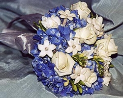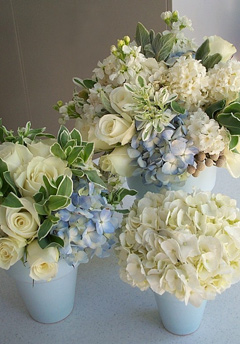 Thanks Cluelessbride for posting all of these great pics! I am planning to use blue hydrangeas and these photos provide a lot of good ideas. I am also hoping to add seafoam green and pale yellow or purple colors to my arrangements, but I haven't met with any florists yet.So much to do!