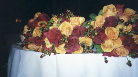 Luckily enough for my fiance and I our parents are picking up most of our wedding. However one of the things we are in charge of paying for is our flowers.... I am all for simple and elegant(after all the only amazing, spectacular looking thing should be me haha) two ideas to reach the goal of being simple elegant and cheap was, instead on giving my girls each a big bouquet I was thinking of giving them each one long stemed white rose with a burgandy ribbon (the color of their dress). Keep in mind I want my flowers to be a deep burgandy roses cascading with white stefonotis in between. I was also thinking of on the tables having floating candles with the deep burgandy rose petals.... do these things sound tacky? I have plenty of time before my wedding but my wheels are always turning... tell me what you think