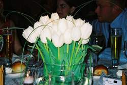 that is so pretty!...about the only thing i always knew for flowers was that i loved tulips..i toyed with the idea of diff. colors, either mixed or one solid bunch at each table, but the florist convinced me white would look great, and flowerfield is really white, and she was right! i loved it, and they also put spotlights on the centerpieces at Flowerfield, which i didn't even know, and it looked amazing!