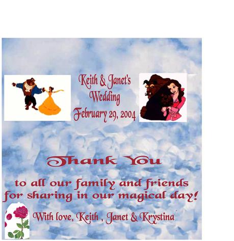 i gotone thing done today! i was going to get candy wrappers made to hand out as people leave but they where a little to much so my sister and i went to work today on the computer and we made them ourselfs!as soon as i can i will post a pic of them!