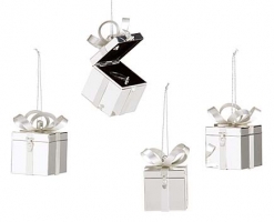 we are giving x-mas ornaments for our favors for our nov. wedding. I found silver boxed ornaments w/ swarovski crystals. It was a great find- believe it or not we got them in CVS. they are really cute and it says right on the box- made w/ swarovski crystals!! it is a great idea!!