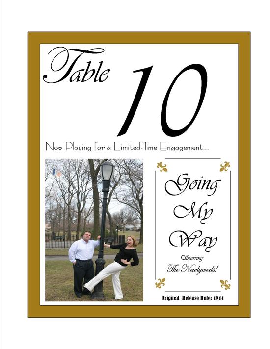 I think I've seen someone else do this before. I want to go to the park with FH and take pics of us in different poses holding a sign with each table # on it. My only problem is the size that the sign has to be inorder to see it in a 5x7 pic, which will be on each table.