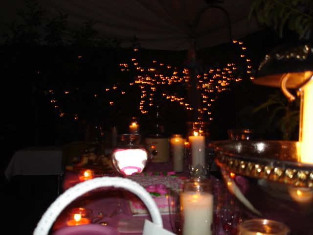 I will again show more of these...but my parents put white christmas lights all over the backyard and it looked fabulous!!! Very romantic! The champagne fountain lit up as well and was just gorgeous at night time!!!