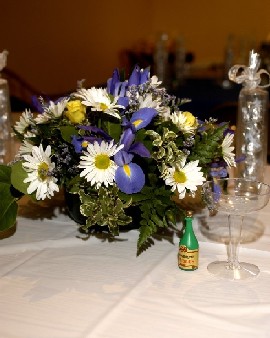 We had our engagement party last summer. We had about 80 people at Timber Point Country Club in Great River. We had a Sunflower theme. I hand painted terra cotta pots and placed gardening moss inside with a votive candle. I then wrapped them in tule and tied them with a sunflower. FM me if you have any questions!!!! Here are a few pics . . .