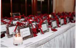 Favors: Wrap-with-us. I got picture frame placeholders as our favors and got a great price on them. They had all of the favors in stock and it was really easy making our own placecards.