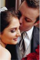 Tuxedo: Gino’s fashion: Oscar de la Renta. Roger and I went to a few places looking for a tux for him, but the sales people at most places weren’t helpful at all. Then we decided to go to Gino’s Fashion on a recommendation from his brother that had recently gotten married. The girl there was so helpful. She let Roger try on about 8 different tuxes until we found the perfect one. It was a double breasted tux with a taupe tie and vest. He looked so great in it. Gino’s has great service and prices.MOH dress: Carmela’s Bridal Garden: Bill Levkoff. My sister and I went to a bunch of different stores looking for a dress for her. We loved this dress on her because it was the most flattering. It really looked beautiful on her. My sister found Carmela’s and they were the nicest to deal with. The price was the same as every other place, but we liked working with the people in this store better. She got her alterations done there as well, and was really pleased with the results.