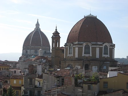 Does it have to be 5-Star? There are so many wonderful smaller, romantic and cozy hotels in Florence. This was the view from our balcony on our last trip, and it was a 3 or 4 star hotel. We heard those church bells as well, though were hardly there an hour outside of sleep time. Also, keep in mind that the 'star' system is like grading on a curve . . . . a five star in Florence may not be like the Plaza Hotel in NYC. And a three start in Florence isn't going to be a Comfort Inn. All the buildings are old, everything around you is gorgeous, and what's most important is feeling very 'Italian' while you're there. You will spend NO time in your hotel. It is also not a hard city to get around and see everything, I've been twice.Whatever you do, try to take a tour to DaVinci's place on the hill, where you can see the location from which he sent many a devoted assistant into the air to test his various 'flying machines.' It's a beautiful location and very interesting!!