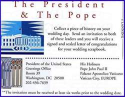 Wedding Forums > Brides Helping Brides ™ > For Newbies - Invite the President and the Pope!