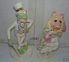 For my wedding I bought a lenox kermit and a lenox Miss piggy. I love them so much I decided to use it as my cake topper. Well My bridal shower came and my Mom was very excited about one gift she had. Well When I opened it up she bought the same exact thing i had already purchased. I didnt want to break her heart and the excitement she had so i did not tell her I had already purchased them. Anyway now I have two sets. I want to sell them. Iam just trying to get what I paid for them. They are both from Lenox 24kt gold plated. NEVER USED!! Still in Original Boxes. Iam asking for $150.00 for both. I paid $85.00 each. FM me if your interested. I dont have pics of the brand new ones here at work so, I will post pics of them from my wedding. The second is both of them out of the box.