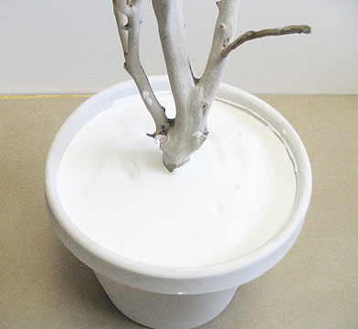 Step 5. That’s it! Set your tree out of the way for about 20 to 30 minutes while the plaster cures. After the plaster has cured, place other materials on top and around the base to conceal the plaster.
