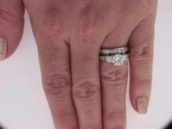 i have a 5 stone ring, i was wondering what the heck i am gonna do for the wedding ring...i am thinking maybe a solid white gold band and fi would get one to match...or, our jeweler suggested we have one made to fit, but then they would need my ring to make the mold, etc, and i already went through all that when i had my ring changes from 18k yellow gold to 14k white setting and 18k yellow band (18k all around was way to soft and i lost a stone). but i don't know, since my band is yellow, i think a white gold ring may look funny next to it, even though the setting is white. any suggestions? anyone else have a 2 toned ring? ~lacey