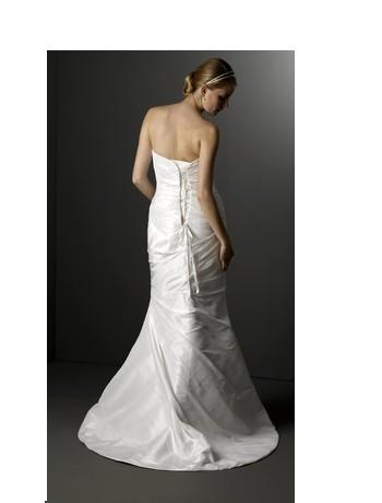 My cousin bought a pretty mermaid dress with no beading or lace at RK Bridal. It was from the designer 'White One.' I think it was a 2008 style but it's still worth a shot.