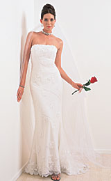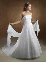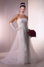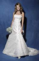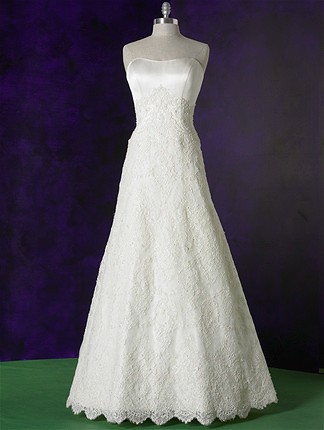 a wedding gown that is all lace and is a slim cut and does not look to full. If anybody has any pictures can you please post them.TIA