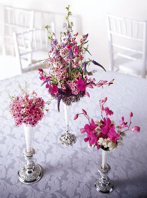 Jenn,I have been to a wedding with those pedistals and saw another wedding set up at the SC ...I love them I am getting them too. I saw them with all different pastel color roses (pink, purple, yellow, white), orchids, and purple flowers like the ones in the pic above. They were so full it looked beautiful. Since your bm dresses are lilac, i think the pastel flowers would be a nice choice.
