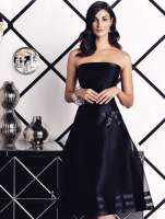 It's the Dessy #2015, which seems to be a favorite on this site. (I'm looking for it in black, size 8 or 10--preferably 8).