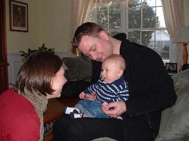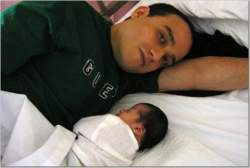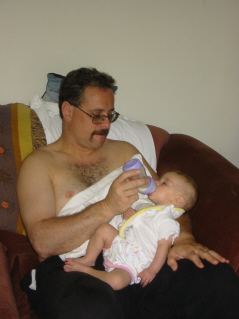 This is my theory, but my husband can sleep through anything (even a baby crying) so I'm not too hopeful!! And that pic of your Dh and baby is just soooooooo beautiful