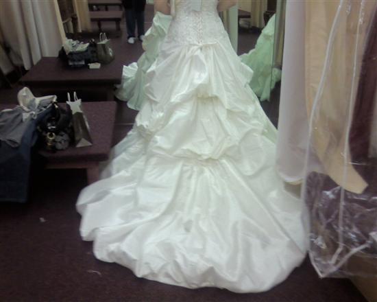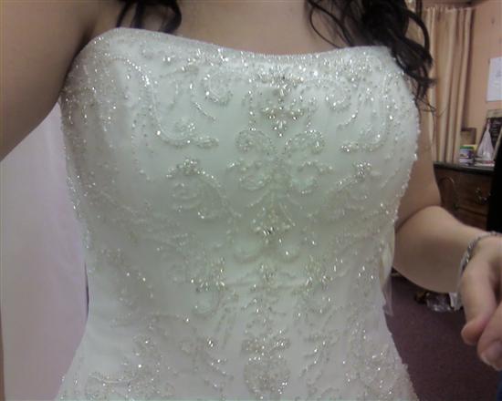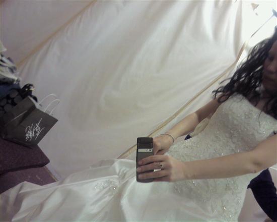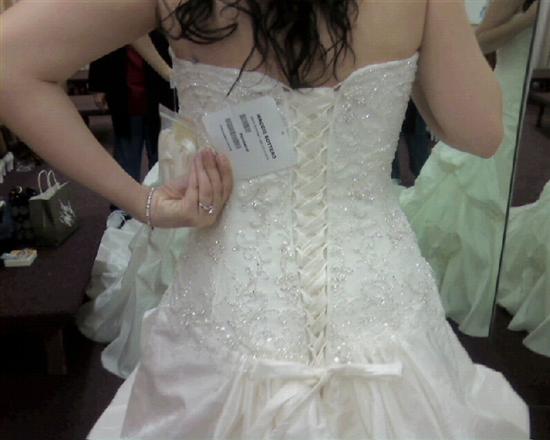 Trying my dress on.