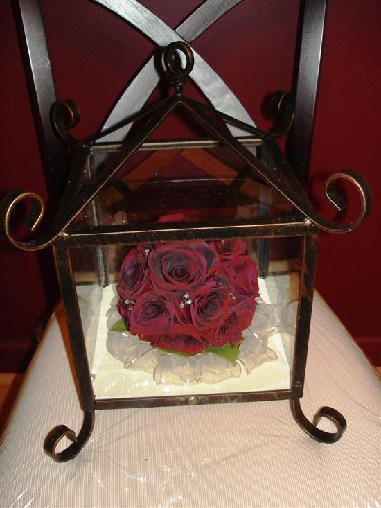 Someone has to send it to them in a box they send to you, the day after your wedding. You work with them on a design after you get back from your honeymoon. This isn't through my florist. And yes, those are my real flowers!!!