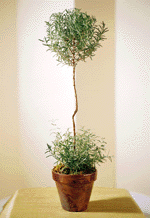 i just saw something this weekend that was like a large glass hurricane with all green fruit in it- grapes, limes, apples, pears...with ivy spilling out the top and votives all around.it looked so cute!
