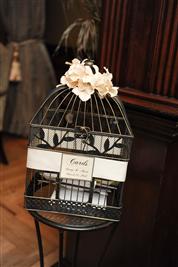 2. Customized bird cage card holder. Also ordered from an Etsy vendor. Cage has thick brown and ivory ribbon around it. Piece of cardstock on front has bride and grooms name and wedding date on it and can easily be removed from ribbon so that you can put your own if you want! Birdcage fit over 175 cards. Bought for $110. Asking $50.