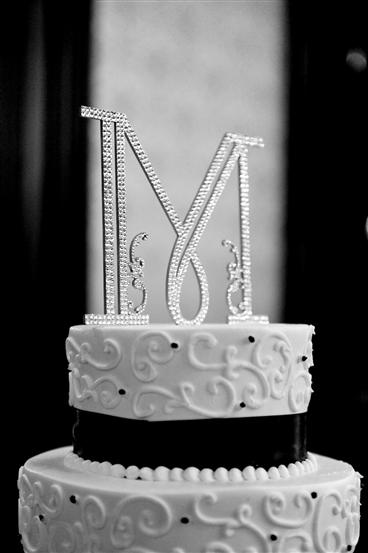 3. Letter 'M' Swarovski crystal cake topper. Beautiful 6 inch cake topper completely hand made and covered in Swarovski crystals. Bought it from Etsy vendor (http://www.etsy.com/shop/BarbieHillDesigns?ga_search_query=swarovski+wedding+topper&ga_view_type=gallery&ga_ship_to=ZZ&ga_min=0&ga_max=0&ga_search_type=all&ref=sr_gallery_41)