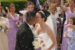 My priest said 'no' to ANY rice because there are starving people in this world, and we shouldn't be throwing food. Soooooo... we're going with red rose petals, which if what I've always wanted anyway (I LOVE how they look touched up with the red in the black and white pictures). Just make sure your church doesn't have an issue with it like mine does. (I'm just thrilled he's letting them throw the rose petals!)