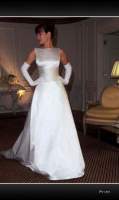 AAAAAWWW, thanks! The designer is Romona keveza. I don't have a pic of the back, but it is opened and low, with buttons down the entire train (chapel-length, by the way.I got the pic from www.romonakeveza.com - she just released the pics of her 2005 collection...