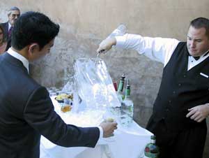 I saw this as an option at the Watermill. Ask your catering hall what vendor they use for ice sculptures. That should point you in the right direction.