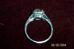 Ring: Old Miner's Cut, simple thick platinum band (his grandmother's diamond)