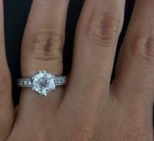 Ring: Simple, 6 prong, round cut solitare in white gold. I gave him some direction but he picked it.