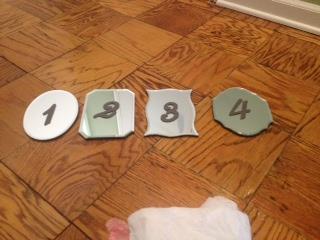 Table Numbers/Mirrors - I have 20 mirrors from Michaels (4 different shapes). 18 of them have gray numbers painted on them and 2 are blank. The numbers come off easily with a razor blade. I would also sell the stencils I used for the numbers if interested. Looking for $40 for all of them - $2 per mirror.