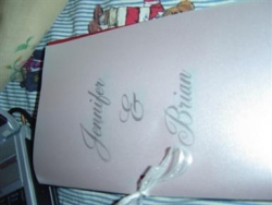 Ok, the red ones came out really nice, I bought some silver paper today bc I didn't have enough paper for all my programs, the silver didn't come out that great, the printing isn't as vibrant, and what also is getting me upset is that the printing isn't coming out nicely on the vellum, its all smudgy...anyone have any suggestions, I put the vellum over the actual program, and just printed the cover on the actual paper (does this make any sense..) But as for the alternating colors, the printing is coming out amazingly on the red, pink and white....silver will be for the extras that I need...Here are some pics....