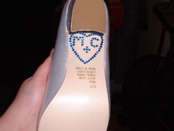 He used this program at work to make it and then used it as a template, and used a pin to pock small hole son the bottom of the show for the outline of the crystals.... it was just a great idea... I LOVE IT....