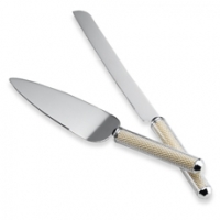 The stem and the handles of the cake server set are filled with pearls...it's soo pretty in person.