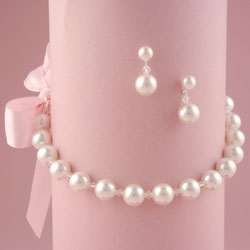 I know I saw a picture of bridesmaid's wearing a pearl necklace but only 1/2 of the necklace was pearls, the back of the necklace was like an organza ribbon.Anyone have any idea what I am talking about.