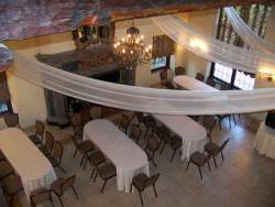 Maybe narrow is a better word. I took a pic from the bridal suite when there wasn't a wedding going on and saw different sized tables and how they set it up. It seemed fine. Hope the pics help.