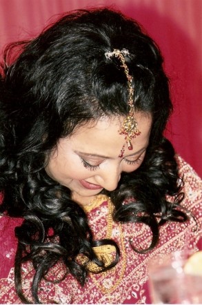 i don't know if i should opt for an updo for a 1/2 up 1/2 down style for the reception..for my engagement, i did a 1/2up 1/2 down.. for the henna and post wedding stuff.. it'll be 1/2 and 1/2.. my mom swears i look 'older' when i put my hair up.. so she's egging me on for 1/2 and 1/2..