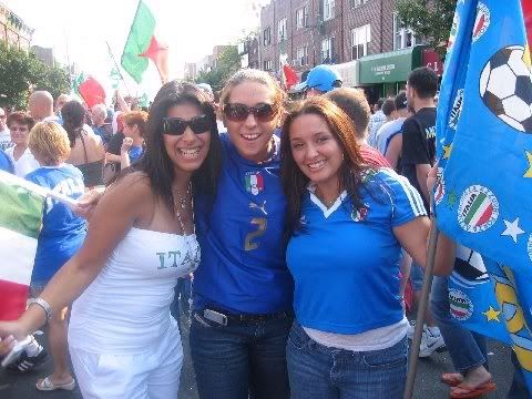 What an unbelievable experience yesterday! I lost my voice but it was well worth it FORZA ITALIA CAMPIONI DEL MONDO!!!!!!! We paraded down the streets in Bensonhurst until midnight waving our flags and honking the horns! at one point we were at a red light and i was waving my flag and the car next to us starts honking and pointing to the italian newspapers he was holding in his hands - all of a sudden he rolls down the window and tells my FH to get out of the car and take some. to make a long story short he was an italian paper delivery guy and he gave us copies of the Italian newspapers for free before midnight! I just thought that was so amazing - I'm saving those papers forever along with the ones I have from 1982.and another crazy story I saw Jackie with her husband on 18th avenue during all the craziness!!! That was another memorable experience!