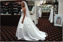 I have a size 10 unaltered sample Reem Acra Paradise for sale. I purchased it this past spring (March '08) at a sample sale on impulse and have since fallen in love with a different gown. The Reem has no alterations and so therefore you can decide to bustle it however you want! Here is a link to Reem Acra size charts... Http://www.scarlettscloset.com/store/pc/viewContent.asp?idpage=38 My understanding is that it can be altered up one size and down two. I have to sell it in order to buy the gown I really want! Kept in a smoke free home in a garment bag in the closet. I'd love for a Reem bride to have it!! email me at: soon 2 be lucy a (at) aim dot com