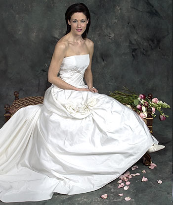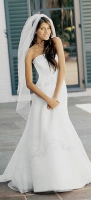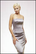 a strapless A-line, dropped waist BM dress (either a seperate or full dress) preferably satin and plain(no beading).... THANKS!!