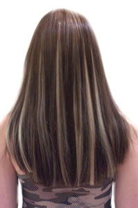 im looking for a hair color.dark brown, with chunks of blonde.
