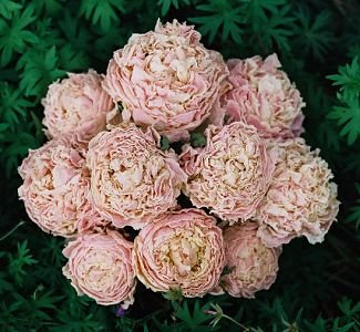 has anyone had centerpieces with mainly Peonies in them? could you send me pics of them. I was thinking i might do peonies with roses in a clear round bubble vase. I might also use them for my bouqueets