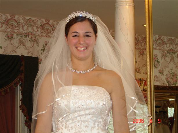 Absolutely gorgeous! I love the bussel, love the head piece, the veil, the neclace - and ESPECIALLY THE DRESS.That dress was made for you!