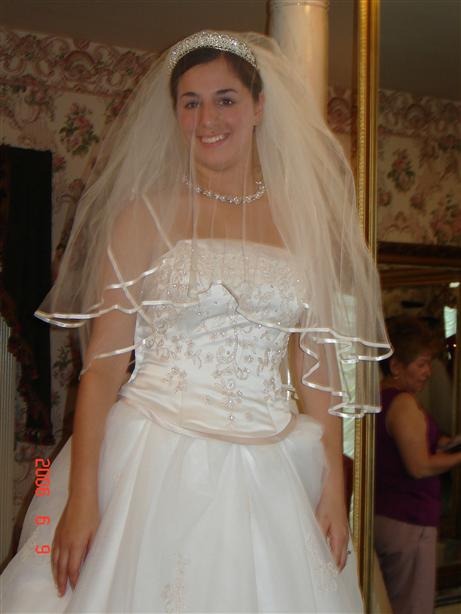 Let me be the first post to say...Wow. You look great. I love the satin-trimmed veil. You look so happy!