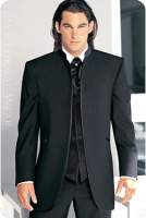 6 GM - fold down collar shirt, black suit, platinum vest and tie.