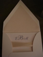 I also needed an extra card to put the accomodations information on so I went to Michaels and bought an extra set of cards which were supposed to be used for something else, not sure what. They didnt exactly match and dont really fit nicely in the pocketfold, so I decided to put it in the back of the pocketfold. Not really happy that they dont sell extra cards for those kits...you would have to buy a whole other kit. The kit came with invite, reception card, and response card.
