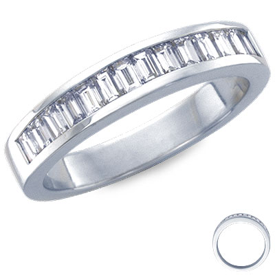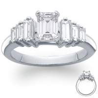 Kimberly,My ring is very similar to yours except with round channel set diamonds on the side and it has a bridge, where it meets the center stone. Here's my pic! I am also getting 2 bands too, one to match my engagement ring and one to match his...love that idea.